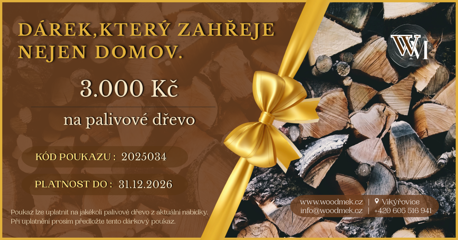 Dárkový poukaz na palivové dřevo